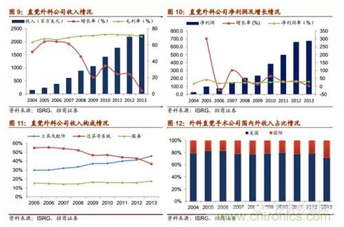 腹腔手術(shù)輔助醫(yī)用機(jī)器人的領(lǐng)軍者。直覺(jué)外科公司(達(dá)芬奇公司)(納斯達(dá)克股票代碼:ISRG),成立于1995年11月9日,是全球領(lǐng)先的微創(chuàng)機(jī)器人輔助手術(shù)機(jī)器人公司,是腹腔手術(shù)輔助醫(yī)用機(jī)器人的領(lǐng)軍者,主要負(fù)責(zé)設(shè)計(jì)、制造和銷(xiāo)售達(dá)芬奇外科系統(tǒng)及相關(guān)儀器配件。公司總部設(shè)于美國(guó)加州,在美國(guó)、西歐大部分國(guó)家(西班牙,葡萄牙,意大利和希臘)、韓國(guó)、捷克共和國(guó)、斯洛伐克、匈牙利等國(guó)家都有直接銷(xiāo)售結(jié)構(gòu)。截止13年末,直覺(jué)外科公司共雇員工2792人,其中325人從事研究開(kāi)發(fā),1018人從事制造業(yè)和服務(wù),1449人從事?tīng)I(yíng)銷(xiāo)、銷(xiāo)售和管理活動(dòng)。