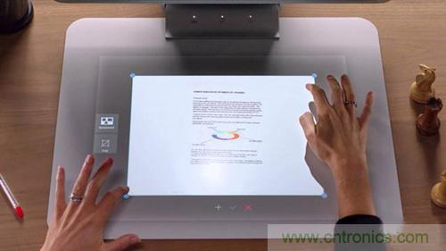 第一代的惠普 Sprout 在機(jī)身頂部有一組攝像頭和投影儀,可將操作界面投射到集成在底座部分的觸摸板上,能夠?qū)崿F(xiàn)觸摸、3D 掃描等操作?;萜展緦⑵浞Q為“混合現(xiàn)實(shí)”。由于惠普公司將這一產(chǎn)品定位在家庭娛樂與創(chuàng)造方面,這一產(chǎn)品并沒有吸引到更多的目光。