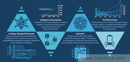 集成的功能數(shù)量越多,運行的并發(fā)性也就越高。這使得驗證系統(tǒng)變得越發(fā)困難,因為一個系統(tǒng)可能包含數(shù)十億門。因此,我們必須重新考慮驗證技術,這是不言而喻的。