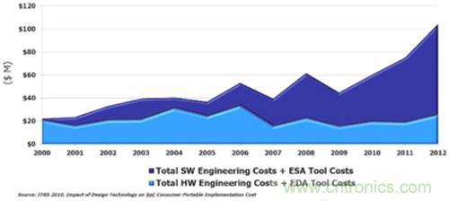 圖 5.增加軟件內(nèi)容可推動 SoC 開發(fā)和成本節(jié)約。