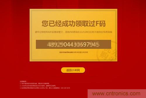 小米F碼領(lǐng)取成功界面
