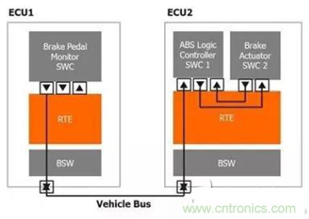 每個ECU都有為它量身定制的運行環(huán)境(RTE),通??赏ㄟ^配套的設(shè)計工具來自動創(chuàng)建。真正的電子控制單元之間的實際通信將實現(xiàn)成CAN或Flex Ray總線的一部分,而運行環(huán)境通過產(chǎn)生工具進行配置,以便執(zhí)行相連AUTOSAR組件所需的通信路徑。運行環(huán)境可以切實執(zhí)行虛擬功能總線和架構(gòu)設(shè)計流程的通信和連接拓撲。由于AUTOSAR標準支持很多不同類型的軟件組件,運行環(huán)境必須考慮各種軟件組件存在的限制和變化。