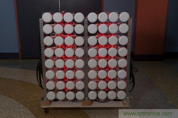 大家可以從下圖中美國萊斯大學(xué)的大規(guī)模天線陣列原型機(jī)中看到由64個小天線組成的天線陣列,這很好地展示了大規(guī)模天線系統(tǒng)的雛形。
