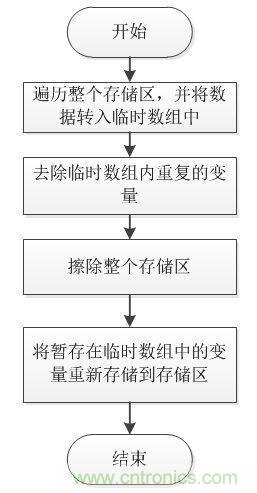 通過這些步驟,將存儲(chǔ)區(qū)中存儲(chǔ)的變量讀出,并將存儲(chǔ)區(qū)中的重復(fù)的無效數(shù)據(jù)清除。下面是源代碼:
