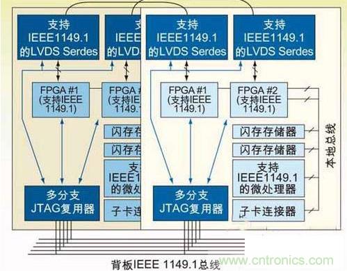當能夠?qū)σ粋€背板上的多板卡系統(tǒng)級使用到JTAG的特性時,就實現(xiàn)了下一代JTAG接入。在這種環(huán)境下,仍然能夠單獨實現(xiàn)單板卡級JTAG功能,而且 還可以利用到板卡間的功能。這一代JTAG應(yīng)用不 但促進了單板卡上不同規(guī)則的設(shè)計團隊相互合作,也促進了整個系統(tǒng)下不同板卡設(shè)計團隊之間的合作。如果在上一代JTAG應(yīng)用中采用了一個JTAG多路器,那 么這個多路器支持多支路(mulTI-drop)接入。采用一種尋址方案,可以將串行JTAG總線用于多支路配置,提供對多板卡的支持。而一旦JTAG能 夠接入一塊背板上的多個板卡,就能實現(xiàn)系統(tǒng)級的配置或編程(例如,JTAG可以并行接入多塊板卡)。