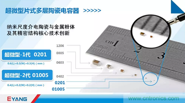 深圳市宇陽科技發(fā)展有限公司承擔(dān)的國家強(qiáng)基工程項(xiàng)目“移動(dòng)互聯(lián)用超微型片式多層陶瓷電容器”再次取得新進(jìn)展:在超微型-1代產(chǎn)品0201實(shí)現(xiàn)產(chǎn)業(yè)化的基礎(chǔ)上,超微型-2代產(chǎn)品01005研發(fā)成功,達(dá)成產(chǎn)業(yè)化能力。到去年為止,兩者共計(jì)形成近900億片的年總產(chǎn)能。