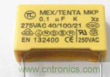 C1: 降壓電容,利用較大的容抗限制電路總電流。常用聚酯電容(CL21)、聚丙烯電容(CBB21)、安規(guī)電容(X2) ,容值依負(fù)載需求而定,此電容容量越大電路越不安全,在設(shè)計(jì)此電路時(shí),如果220VAC供電情況下容量超過2.5uF,110VAC供電情況下容量超過4uF就因該放棄阻容降壓考慮其它電路。此處選用0.56uF安規(guī)電容(X2),提供19mA電流。