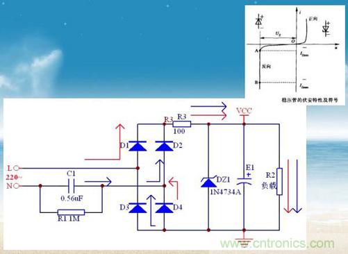 采用半波整流方式,根據(jù)計(jì)算式I1=0.5|I|=34500C可知,C=0.43uF。所以此處選用0.47uF的電容,反過來可以驗(yàn)證提供的電流I1=34500C=16.2mA,多余電流從穩(wěn)壓管流過。