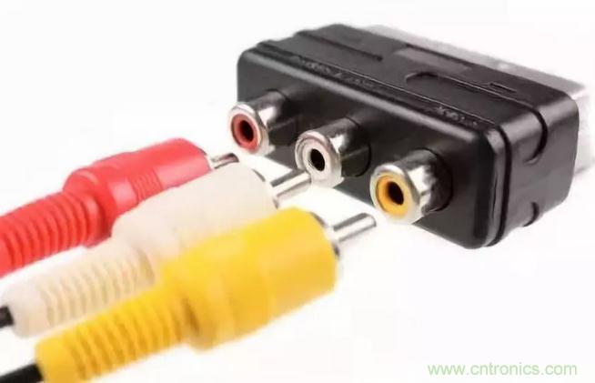 復合視頻接口是最基本的視頻連接器接口,過去主要用于家用視頻設備。這種接口常見于老款電視機、VCR和家用游戲機,線和端子都是黃色。因為對YUV三種源信號(Y:亮度,U/V:顏色)進行同步復合(composite),所以稱為復合視頻。在同一個信道(line)傳輸亮度和顏色信號,所以畫質(zhì)遠不如后來出現(xiàn)的其他接口標準。復合視頻接口輸出的視頻分辨率最高可達SD(—standard definition)級,也就是480i(NTSC)或576i(PAL)。模擬視頻連接器通常不包含音頻信號,因此如上圖所示,需要單獨的音頻線。一般用白色(左)和紅色(右)兩個連接器傳輸立體聲信號。