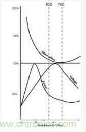 在有線電視等應(yīng)用中,衰減比功率處理更為關(guān)鍵,使用了75歐姆的電纜。75歐姆的另一個優(yōu)點是它可以通過簡單的4:1巴倫輕松匹配標(biāo)準(zhǔn)的300歐姆折疊偶極天線元件。然而,在絕大多數(shù)微波/毫米波應(yīng)用中,需要使用50歐姆的阻抗。
