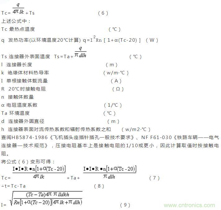 依據(jù)熱力學(xué)熱傳導(dǎo)、熱對(duì)流、熱輻射理論,整理出電連接器最熱點(diǎn)溫度計(jì)算公式: