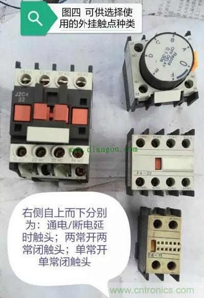 再來(lái)看由于該型繼電器只有兩對(duì)常開(kāi)觸點(diǎn)和兩對(duì)常閉觸點(diǎn),一旦出現(xiàn)觸點(diǎn)不夠情況時(shí),難不成還要再安裝一只繼電器?其實(shí)在設(shè)計(jì)之初,這個(gè)問(wèn)題就已經(jīng)被考慮到。圖四就是該型繼電器所能加裝的“外掛”裝備: