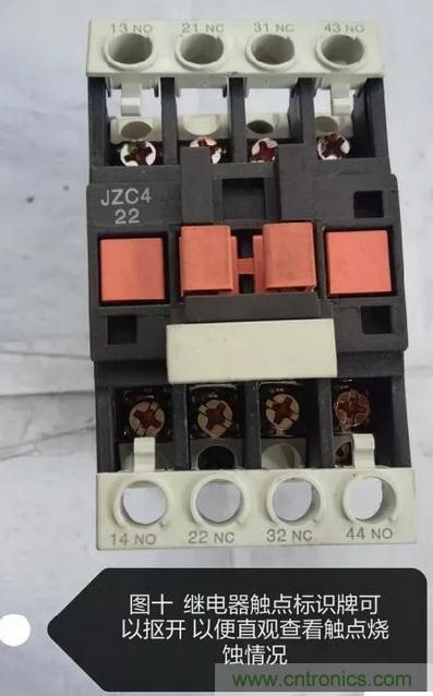 最后圖十所展示的是直接查看繼電器各觸點(diǎn)燒蝕情況的方法,該方法相較萬(wàn)用表測(cè)量法,更為直觀: