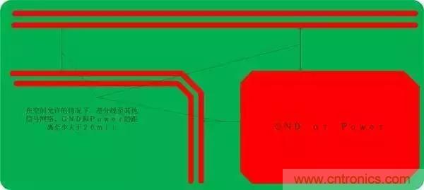 6.為了減少串擾,在空間允許的情況下,其他信號網(wǎng)絡(luò)及地離差分線的間距至少20mil(20mil是經(jīng)驗值),覆地與差分線的距離過近將對差分線的阻抗產(chǎn)生影響;