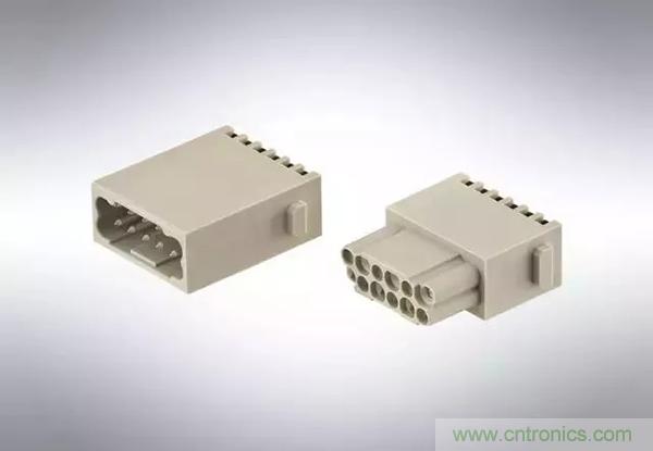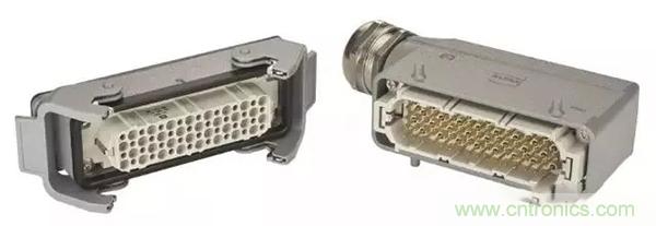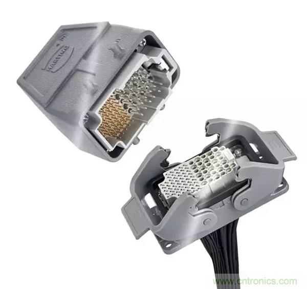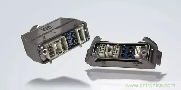 第二個(gè)例子是,Han® 高密度模塊:滿載的情況下,在模塊中有25個(gè)插針,能夠傳輸4A/50V的信號(hào)。其他具有更高的接觸密度的Han®模塊也在開(kāi)發(fā)之中。