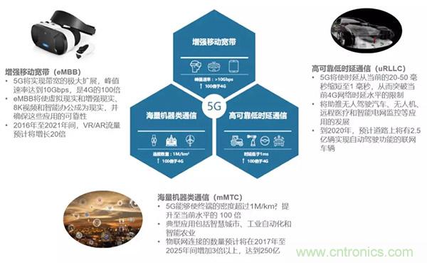 未來5G將應(yīng)用在增強(qiáng)移動寬帶(eMBB)、高可靠低時延通信(uRLLC)、海量機(jī)器類通信(mMTC)三大場景。而這需求的是非常寬的帶寬,非常高傳輸?shù)乃俾?,非??煽康牡脱訒r的連接,另外,還需要海量機(jī)器類型連接的網(wǎng)絡(luò)。