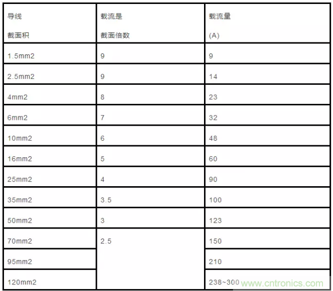 嚴格要求就用導(dǎo)線截面積乘以4作為載流量。載流量小,導(dǎo)線就要得多,成本就高。為了降低成本,又保證安全,很多家裝在不是封閉布線時就采用導(dǎo)線截面積乘以5倍或者6倍來提高導(dǎo)線的載流量。