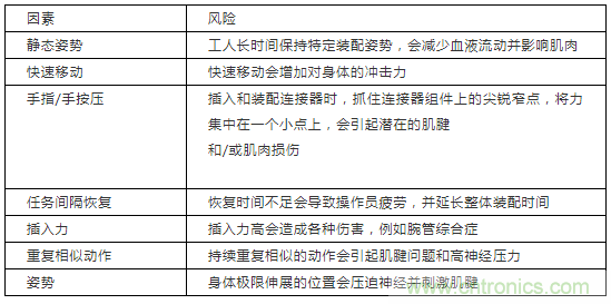 表 1:連接器裝配的相關風險因素示例