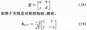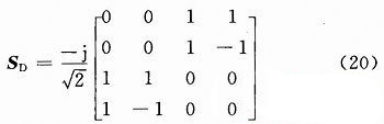 對于一個雙天線系統(tǒng),應(yīng)該有兩個正交模同時存在,去耦合網(wǎng)絡(luò)是一個四端口網(wǎng)絡(luò),正交輻射矩陣可以寫為: