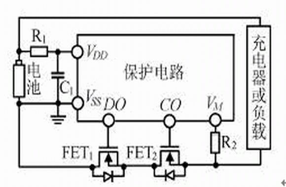 為了有效利用放電電流或充電電流,F(xiàn)ET1和FET2采用導(dǎo)通電阻很小的功率管。它們的選擇原則除了導(dǎo)通電阻要小,還要求體積小,并且關(guān)閉時(shí)源漏擊穿電壓要能經(jīng)受不匹配充電器的影響。從理論上說(shuō),F(xiàn)ET1和FET2可以用N 管也可以用P 管。但由于單節(jié)鋰離子電池保護(hù)電路的電源電壓較低,為了減小導(dǎo)通電阻,一般都采用N管。圖1中二極管是FET1和FET2的寄生二極管,它們的存在使系統(tǒng)在過(guò)放電狀態(tài)下能對(duì)電池充電,在過(guò)充電狀態(tài)下能對(duì)負(fù)載放電。