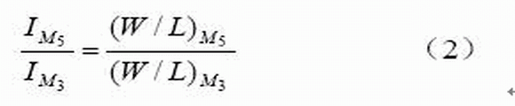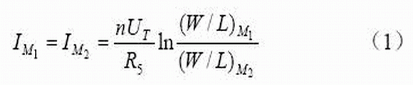 式(1)中n為亞閾值因子,UT為熱電勢(shì)。M3和M5組成電流鏡,則: