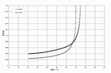 圖2 針對(duì) PolySwitch SRP,VTP及VLR聚合物的PTC材料使用的無源阻抗 vs, 溫度曲線