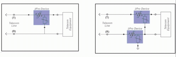 圖1a. 2Pro器件用于不接地系統(tǒng)?!?圖1b. 2Pro器件用于接地系統(tǒng)。