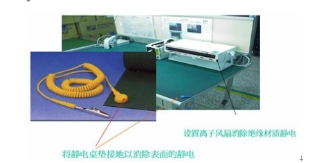 圖2 使用離子風(fēng)扇并將靜電桌布接地以避免ESD