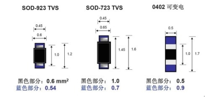 體積:MLV的性能完全由其內(nèi)部材質(zhì)決定,因此很難在減小尺寸的同時(shí)保持或提高性能,封裝尺寸從0402到1206。而TVS采用硅芯片技術(shù),可以得到比MLV更小的元件封裝尺寸(如圖7所示)。