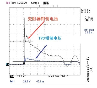性能:TVS有更低的箝制電壓、更低的漏電以及更快的響應(yīng)速度(如圖8所示)