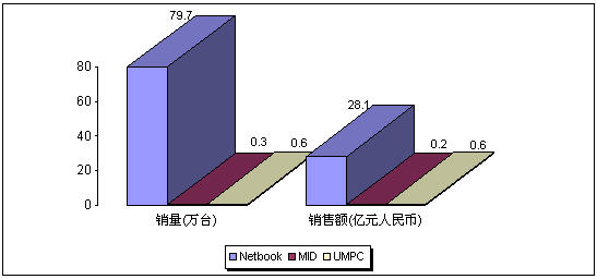 - 2008年Netbook市場銷售量為79.7萬臺,銷售額達到28.1億元