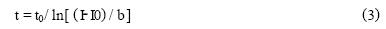 式中t0,I0,b均為常數(shù)。由圖1曲線部分曲線取若干特殊點,經(jīng)計算機(jī)進(jìn)行數(shù)學(xué)處理,得到t0,I0,b的具體數(shù)值: