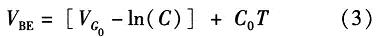 如果忽略由溫度變化引起lnT項(xiàng)變化對(duì)式(2)的影響,dVBE/dT可近似等于常數(shù)C0。常溫下C0約為-2 mV/K。為了簡(jiǎn)化計(jì)算,則PN結(jié)關(guān)于溫度的變化方程可近似線(xiàn)性為