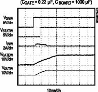在低電壓、多電源系統(tǒng)中,一般會有上電順序的要求,MAX5927/5929提供三種工作模式,包括電壓跟隨模式、順序上電模式和獨立模式,來滿足設(shè)計者的需要。在符合啟動條件,無系統(tǒng)/電路板故障情況下,電壓跟隨模式保證所有四路通道在熱插拔時,同時上電,如果有任何故障發(fā)生,不論是哪一個通道,所有通道同時斷電。圖3是電壓跟隨模式的時序圖,可以看到所有四路電壓同步跟隨上升。