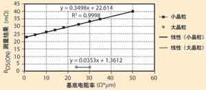 基底電阻率的變化會給RDS(on)測量結(jié)果帶來線性響應(yīng)。圖3顯示了遠遠超出實際基底正常分布的基底電阻率。這樣做是為了顯示響應(yīng)是線性的。