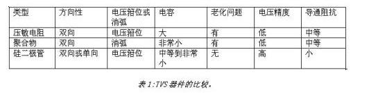 表1總結(jié)了前面談及的三類TVS器件的基本特性。選擇恰當(dāng)?shù)谋Wo(hù)器件應(yīng)考慮多種因素,其中關(guān)鍵的決定因素就是被保護(hù)電路的特性。