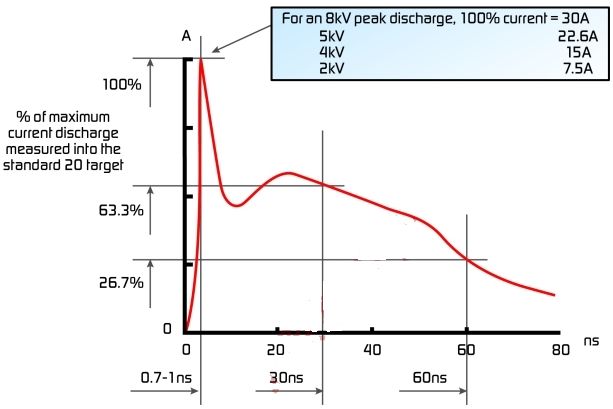 圖1、ESD發(fā)生器模擬的典型8KV的ESD脈沖。