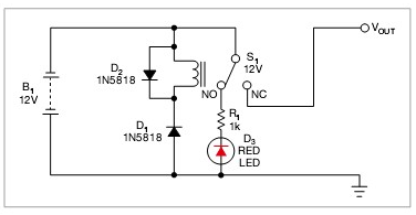 這個方法是用一只繼電器來處理反極性電壓問題。例如,12V供電系統(tǒng)使用12V的繼電器。當(dāng)為電路施加正確極性時,D1為反偏,繼電器S1保持關(guān)閉狀態(tài)。則輸入和輸出電源線正常連接到繼電器的端子,電流就流到最終電路上。二極管D1阻擋了繼電器的供電,防止電路耗電。