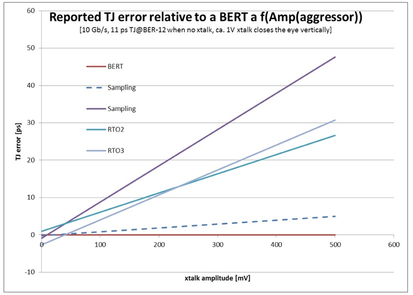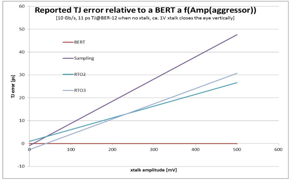 圖4 與BERT相比,示波器中的TJ誤差。(注: RTO = 實(shí)時(shí)示波器,采樣 = 等效時(shí)間示波器)