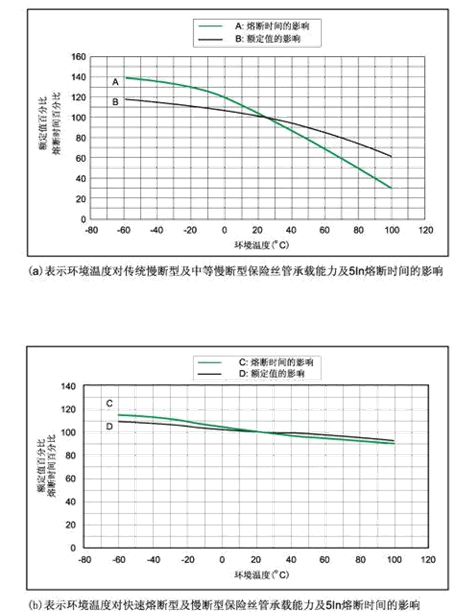 3、環(huán)境溫度對(duì)保險(xiǎn)絲管承載能力的影響。詳見“環(huán)境溫度”
