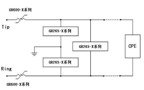 這樣的解決方案具有可以復(fù)位、可多次重復(fù)提供保護(hù)的優(yōu)點。通過使用本公司GR600-X 和相應(yīng)的固體放電管等設(shè)計的一次、二次或三次保護(hù)電路,還可以使網(wǎng)絡(luò)設(shè)備滿足 Telcordia GR-1089 要求。