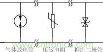 2)氣體放電管和壓敏電阻組合構(gòu)成的抑制電路