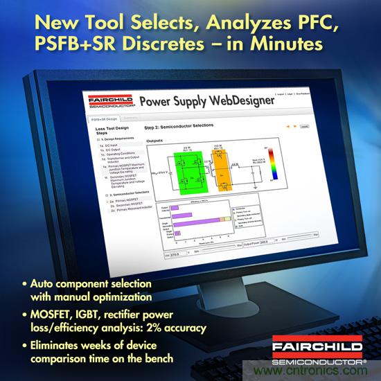 飛兆半導(dǎo)體公司最近將Power Supply WebDesigner (PSW) - 一款在線設(shè)計和模擬工具,可在一分鐘內(nèi)提供完整的設(shè)計–進一步強化,引入傳動系分立式(MOSFET/IGBT/整流器)器件功率損耗和效率分析工具。