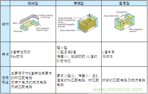 疊層型構(gòu)造雖有3種結(jié)構(gòu)且Q值也較低,但由于其L值偏差及規(guī)格、價(jià)格等整體的平衡性較好,因此被廣泛使用于RF的匹配電路、共振電路及扼流電路中?!?br /> 上述3種構(gòu)造各具特色,根據(jù)其特色其使用方法也各不相同。下講中,我們將介紹電感器的實(shí)際貼裝。