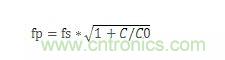 當頻率繼續(xù)提高,高于fs時,LCR支路呈感性,這樣和C0產(chǎn)生并聯(lián)諧振,并聯(lián)諧振頻率fp,其計算公式為: