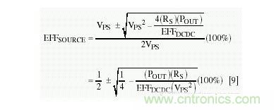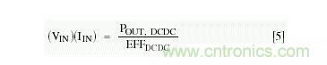 現(xiàn)在,我們有了足夠的信息來(lái)計(jì)算電源自身的耗散功率及其效率。因?yàn)殡娫措妷旱拈_路值(VPS)已經(jīng)給出,我們僅需找出DC-DC轉(zhuǎn)換器的輸入電壓(VIN)。從等式[5]解出IIN: