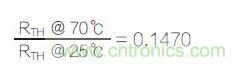 假設(shè)在25℃或室溫下,RTH為10,000Ω,那么,在70℃下,RTH為1,470Ω。