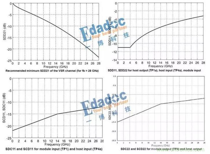 我們還是先來看看28G-VSR協(xié)議里面到底定義了通道的哪些東西吧,如下圖二所示,有插損、回損及模態(tài)轉換的一些無源要求。
