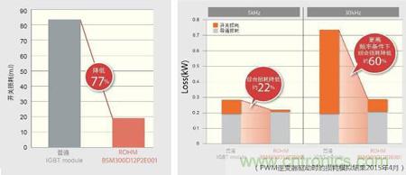 圖4. ROHM新產(chǎn)品與普通IGBT模塊的損耗比較