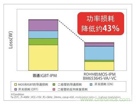 圖9. 普通IGBT-IPM與ROHM的MOS-IPM的損耗比較